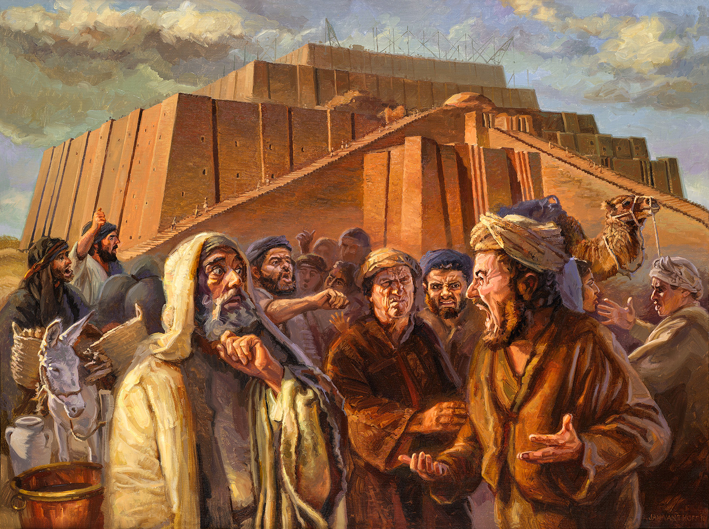Después del diluvio Dios ordena al hombre que sea fructífero y tenga hijos para llenar la tierra. Contra esta orden, se construye una ciudad y una torre alta en una llanura en la tierra de Sinar bajo el lema: