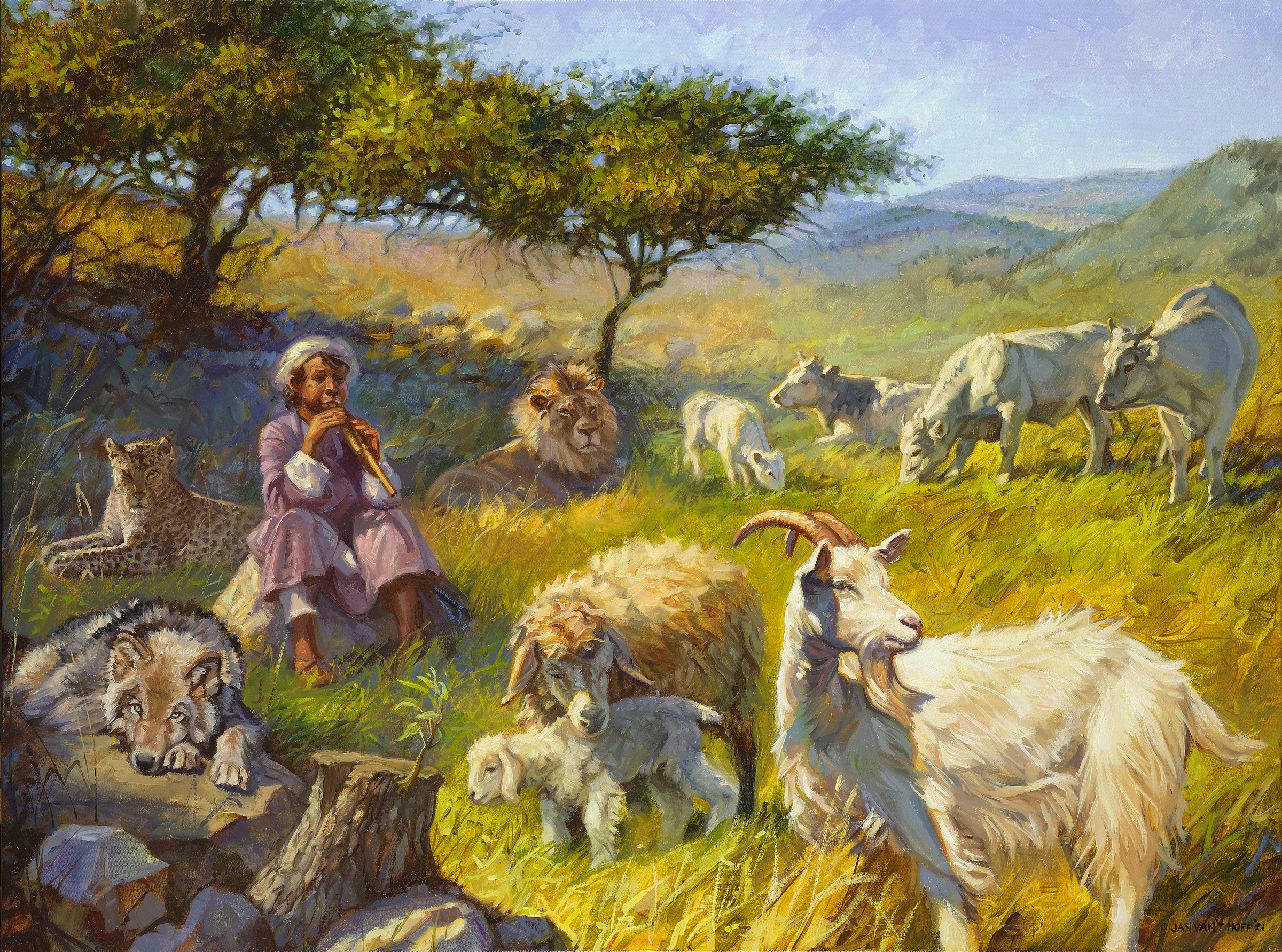 El tema de esta pintura es Isaías 11, versículo 6, un versículo de la profecía de Isaías en el que describe una visión del venidero reino mesiánico de paz. La visión representa la condición paradisíaca que resultará del reinado mesiánico.